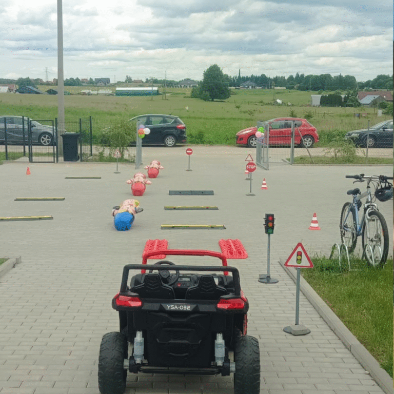 Tor przeszkód z samochodem elektrycznym to świetna rozrywka z elementami edukacyjnymi.