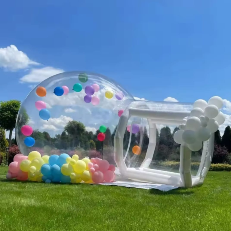 Bubble House z trampoliną to nowoczesna, efektowna atrakcja, która natychmiast przyciąga uwagę swoim futurystycznym wyglądem. Przezroczysta, nadmuchiwana kopuła tworzy wyjątkową, jasną przestrzeń, w której uczestnicy mogą bawić się w niepowtarzalnej atmosferze.